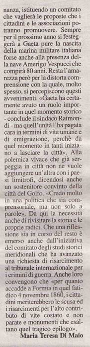 Antonio Ciano, Assessore del Partito del Sud :" Io non festeggio!!Il 6 Novembre inaugureremo, davanti alla Porta Carlo III, insieme ai rappresentanti di 40 Comuni del Sud "eccidiati", un monumento in ricordo dei nostri caduti !!"