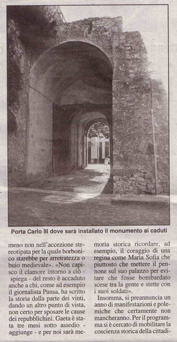 A GAETA DA SABATO 6 NOVEMBRE INIZIANO LE "CONTROMANIFESTAZIONI" PER L'UNITA' D'ITALIA