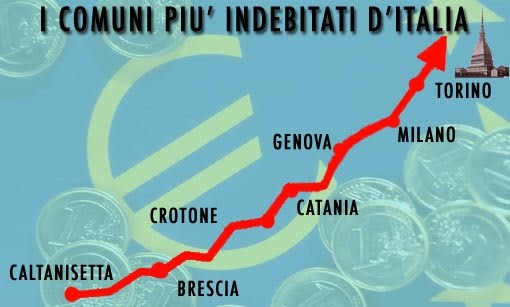 Da un recente post sul blog di Beppe Grillo ed anche da un articolo ADN Kronos che riprende una ricerca della CGIA di Mestre (che non può di certo essere sospettata di tendenze meridionaliste...), scopriamo che i comuni più indebitati, considerando l'indicatore del Debito Pro Capite, sono nell'ordine: Torino, Milano e Genova