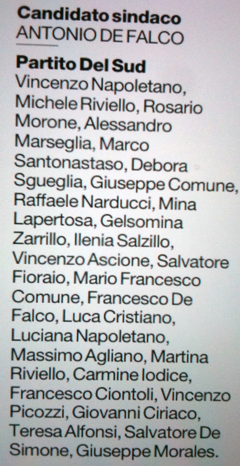 ELEZIONI COMUNALI 2011 - CASERTA -“Partito del Sud” – De Falco Sindaco