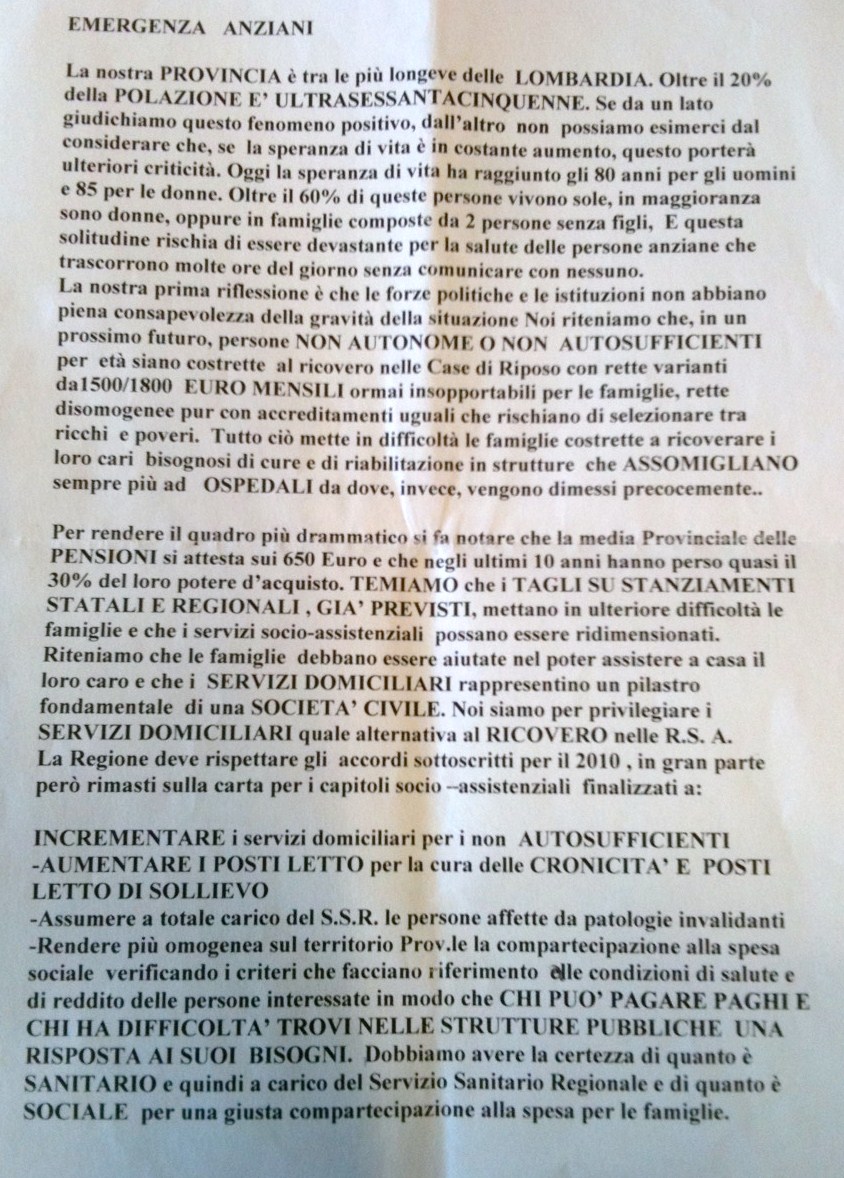 Lo scenario desolante delle politiche governativo, in merito all'assistenza degli anziani, ha acceso il dibattito in sala.Dibattito a cui hanno partecipato alcuni sindaci di comuni mantovani.