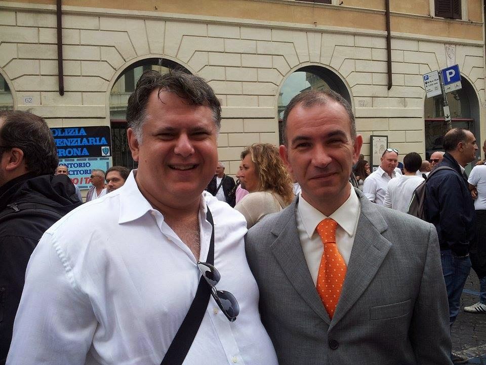 Girolamo Foti del Cocer Difesa e Antonio Rosato Coord. Regionale Lazio del Partito del Sud in piazza Santi Apostoli a Roma.