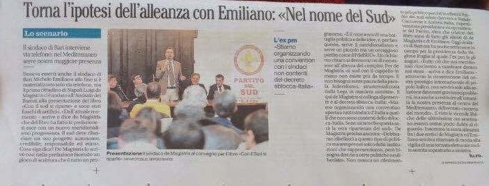 L’auspicio del Partito del Sud è che il meridionalista Michele Emiliano, possa