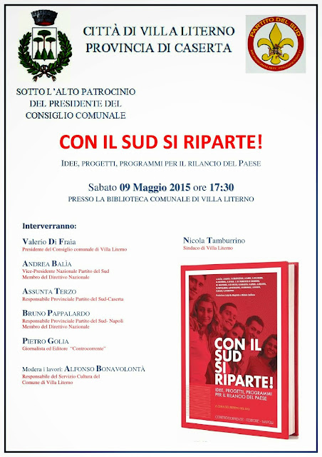 Il giorno 9 maggio 2015 a Villa Literno ( CE) la presentazione del libro " Con il Sud si riparte !" presso la Biblioteca Comunale di Villa Literno.