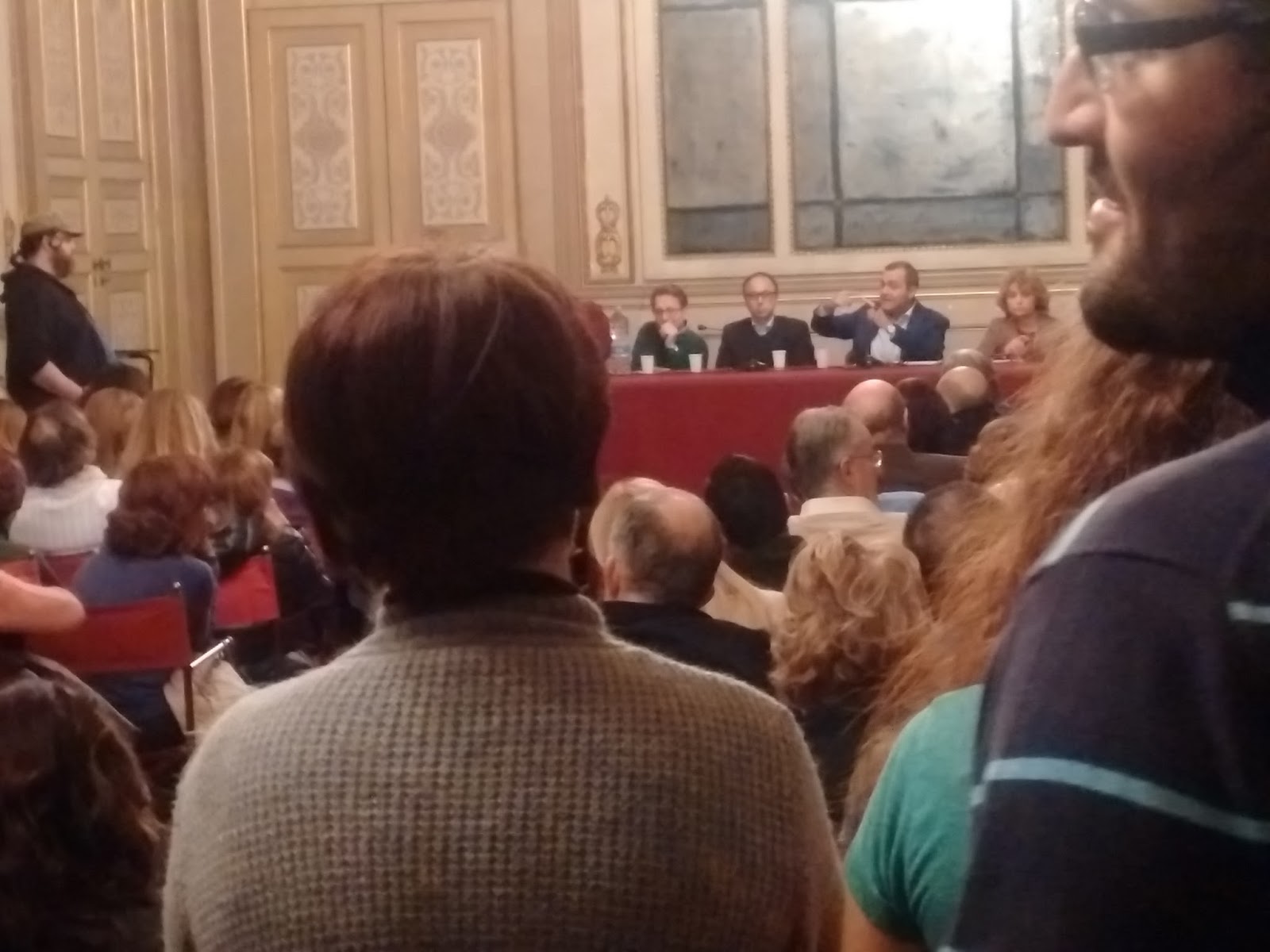 Uditorio estremamente attento e interessato che ha riservato al sindaco applausi sentiti alle sue risposte tra cui uno in particolare durato diversi minuti.