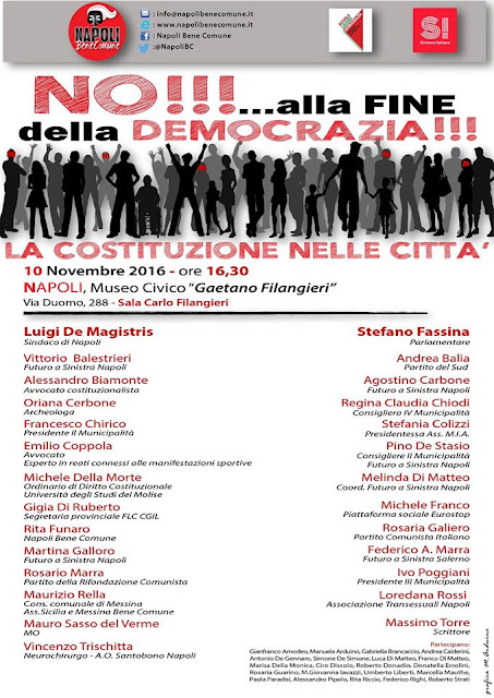 Il 10 novembre a Napoli con Luigi de Magistris e Stefano Fassina: le ragioni del NO nelle nostre città, nella vita quotidiana, per difendere il nostro presente, per affermare i nostri diritti.