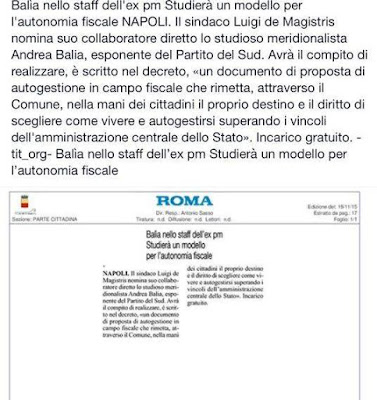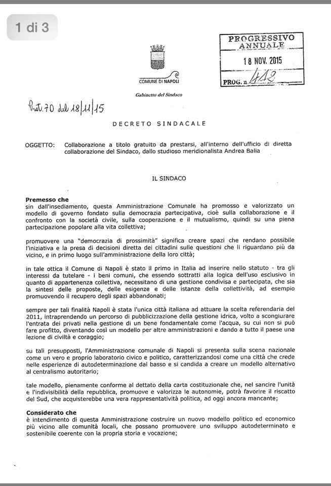 Decreto del Sindaco de Magistris ad Andrea Balìa (PdelSUD) sull'Autonomia per la città di Napoli!