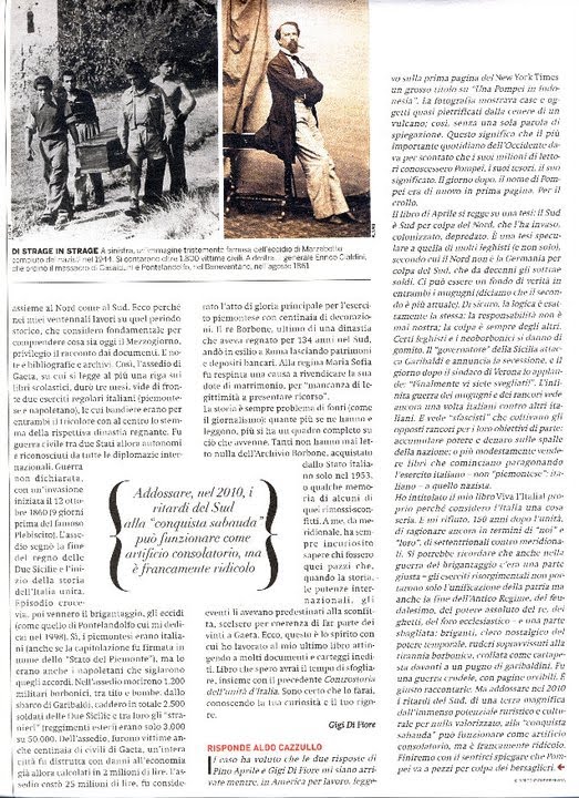 Bisogna che ciascuno decida in quale parte del filone celebrativo si vuole collocare. Siamo una Nazione in grado di ricordare la sua data fondativa senza tacere i limiti e le ingiustizie del Risorgimento, ma siamo anche una nazione che può trovarsi a un passo dalla propria disgregazione. L’evento miracoloso di un secolo e mezzo fa che camminò sulle spalle dei garibaldini, sulle ambizioni del re, sulla genialità di Cavour, sulla predicazione di Mazzini, spesso incompresa da quei contadini e da quella plebe che i neo-borbonici celebrano nel ricordo delle stragi piemontesi a Pontelandolfo e a Casalduni, nel Sanniobeneventano, che segnò l’inizio della dipendenza del Sud denunciata dai meridionalisti storici e che per molti padani di oggi, ministri della Repubblica compresi, rappresenta il prezzo esoso pagato dal Nord, ebbene quell’evento avrebbe bisogno di una classe dirigente in grado di parlare ai cittadini di oggi per cercare le ragioni di una volontà che, scrive Emilio Gentile, «eviti all’Italia unita di finire smembrata e la faccia diventare finalmente la patria comune di italiani e di italiane dotati di caratteri alti e forti, o più semplicemente, di dignità».